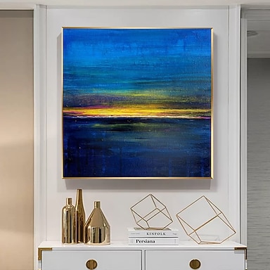 pintura a óleo artesanal lona decoração da arte da parede moderno abstrato bloco de cor azul para decoração de casa rolou pintura sem moldura não esticada
