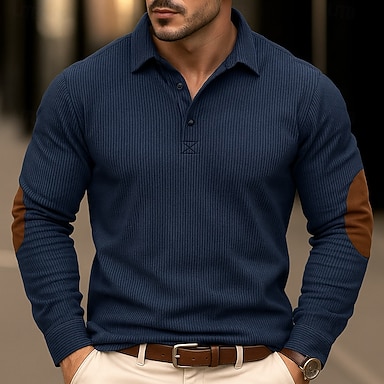Homens Camiseta de Veludo Textura Casual Esportes Lapela Manga Longa Moda Básico Bloco de cor Tecido Patchwork Botões Primavera Outono Outono & inverno Normal Cinzento Marron Azul Marinha Verde Tropa