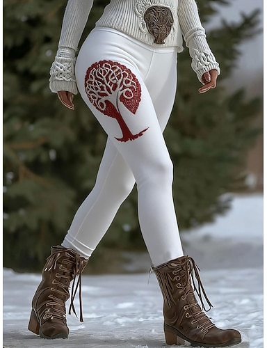 Mulheres Leggings Loungewear Férias Vintage Estilo Étnico Comprimento total Cintura Alta Gráfico Árvore Macio Confortável Com Stretch Elasticidade Alta Diário Casa Ao ar livre Preto Branco Verde