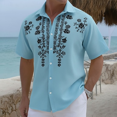 Homens Estampa floral Flores Camisa Social Camisa havaiana camisa de botão Manga Curta Havaiana Recorrer Férias Feriado Roupa de Praia Verão Aberto para a Lateral Impressão 3D camisas de colarinho Um