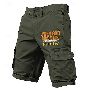 Homens Gráfico Com letras estampadas Engraçado Bermuda Cargo Shorts de trabalho Cintura Média Clássico Casual Ao ar livre Acampar e Caminhar Vários bolsos Designer Roupa