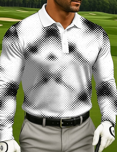 Homens Geométrico Golf Pólo Manga Longa Camisas polo Lapela Casual Roupa Esportiva Roupa Diária Impressão 3D Botões Primavera Outono Inverno Preto Branco