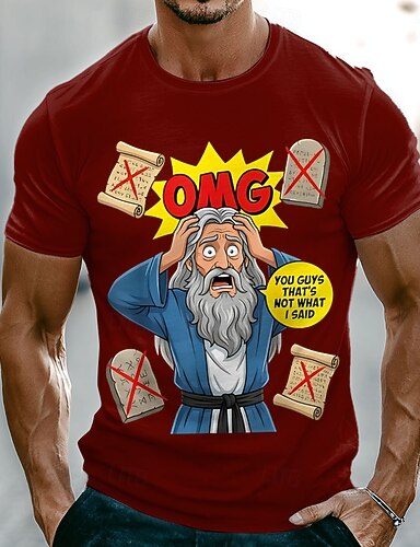 Camiseta Jesus Bíblia Masculina T Shirt Manga Curta Tee Impressão 3D Camisa de Gola Redonda Moda Diário Rua Casual Caqui Verão Primavera Roupas Acessórios
