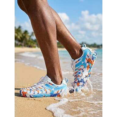 Tênis aquáticos masculinos brancos e laranja de secagem rápida, leves e respiráveis, antiderrapantes, ideais para atividades aquáticas, natação, esportes de praia, viagens à beira-mar e trilhas em rios.