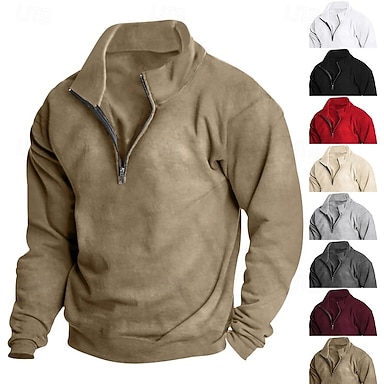 Homens Moletom Moletom com zíper Preto Verde Tropa Azul Marinha Cáqui Cinzento Meio Zíper Tecido Desportos e Ar livre Diário Feriado Poliéster Roupa de rua Casual Primavera & Outono Roupa Moletons