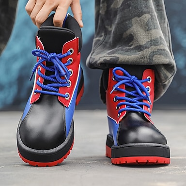 Homens Botas Coturnos Caminhada Vintage Diário Couro Ecológico Confortável Botas Cano Médio Com Cadarço Preto Amarelo Outono Inverno