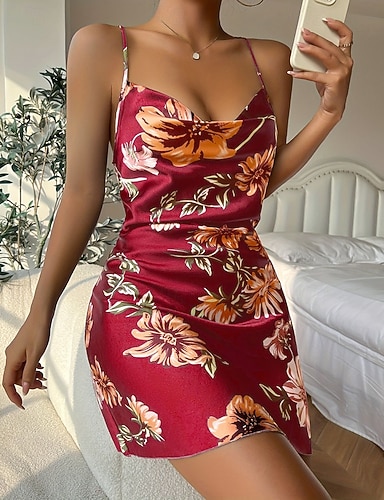Mulheres Loungewear Camisola Sensual Casual Macia Floral Franzido Frente Única Vestidos Casa Férias Sem Manga Decote V Preto Vermelho Verde Verão Primavera Normal