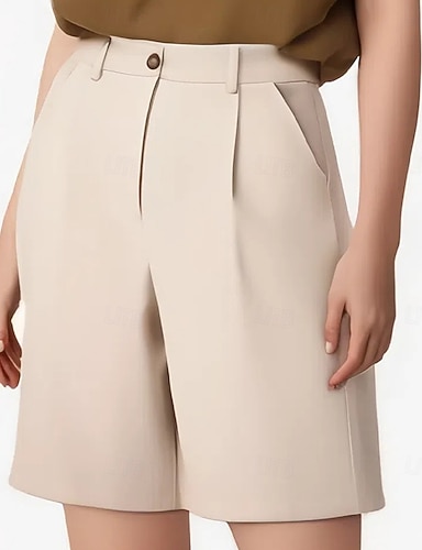 Mulheres Calção Shorts de verão Bermudas Vintage Moda Casual Diário Comprimento do joelho Cintura Alta Côr Sólida Tecido Bolsos Perna reta Conforto Leve Macio Sem Elasticidade Streetwear Escritório