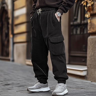 Homens Calças Cargo Calças de Veludo Calças Calça Jogger Com Cordão Cintura elástica Bolso multi Tecido Conforto Quente Comprimento total Ao ar livre Casual Diário Moda Roupa de rua Preto Azul