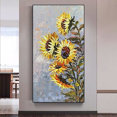 mintura pinturas a óleo de flores feitas à mão em tela arte de parede decoração moderna abstrata imagens de girassol para decoração de casa pintura sem moldura enrolada e não esticada