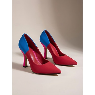 Sapatos de salto alto femininos de bico fino com blocos de cores - vermelho vibrante, azul &Sapatos de salto agulha rosa para festas noturnas e ocasiões especiais. &eventos de moda