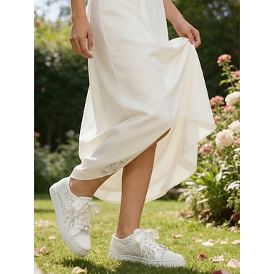 Tênis de noiva feminino com cadarço para casamentos ao ar livre e em jardins – sapatos de noiva confortáveis com cadarços de fita.