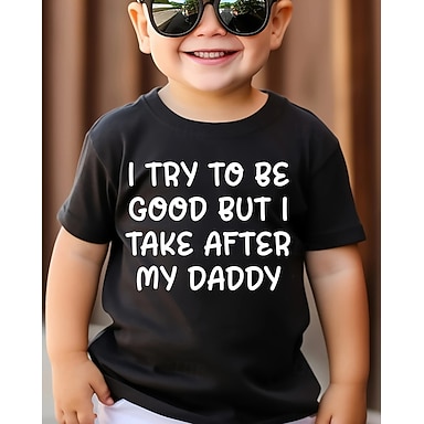 100% Algodão Infantil Para Meninos Preto Letras Camisa Tops Gola Redonda Manga Curta Férias Casual Roupa Diária Moda Desporto Imprimir Verão