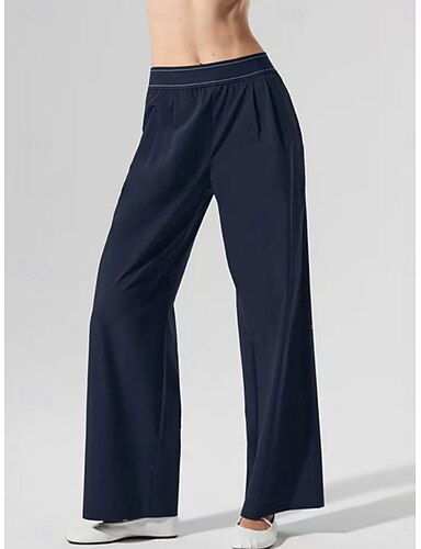 Mulheres Calças Calça casual Reto Moda Roupa de rua Básico Comprimento total Cintura Alta Tecido Bolsos Cintura elástica Confortável Micro-Elástica Diário Férias Rua Preto Azul Marinha Primavera