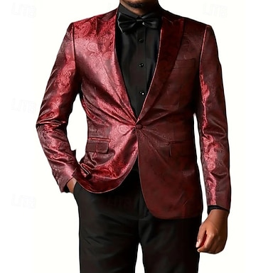 Homens Blazer O negócio Coquetel Festa de Casamento Moda Casual Primavera Outono Poliéster Tecido Jacquard Botões Confortável Não Trespassado Jaqueta esporte Preto Vinho Azul