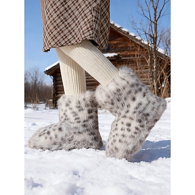 Botas de neve femininas com estampa de leopardo e forro de pele sintética - botinhas de inverno aconchegantes com forro macio de pele sintética, estilosas e quentes para o clima frio e atividades ao