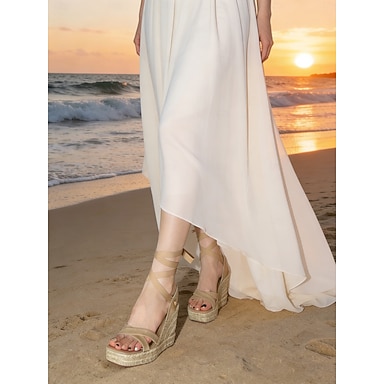 Sandálias espadrille femininas com tiras e plataforma para casamentos na praia - design confortável com amarração, estilo boho de verão, sandálias antiderrapantes.
