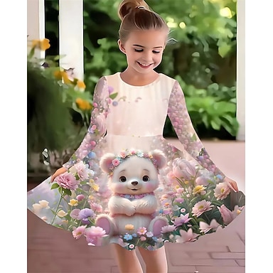 Meninas 3D Floral Animal Vestido Manga Longa Verão Primavera Férias Diário Feriado Princesa Lindo Doce Infantil 4-12 anos Vestido casual Vestido A Line Altura dos Joelhos Normal