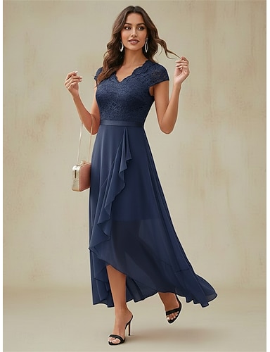 Mulheres Vestido Longo Vestido de renda Vestido de festa Vestido Coquetel Vestido de chiffon Elegante Moda Clássico Ao ar livre Praia Festa Normal Tecido Manga Curta Decote V Azul Real Verão Primavera