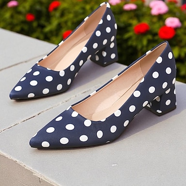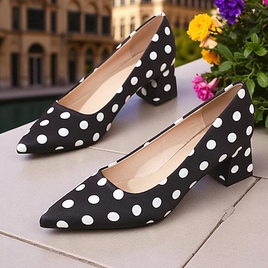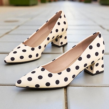 Sapatos femininos estilo slingback com bolinhas - sapatos de salto bloco com bico fino e cetim bege e preto com detalhe de laço, estilo retrô chique dos anos 1950 para festas, uso no escritório e looks de primavera-verão
