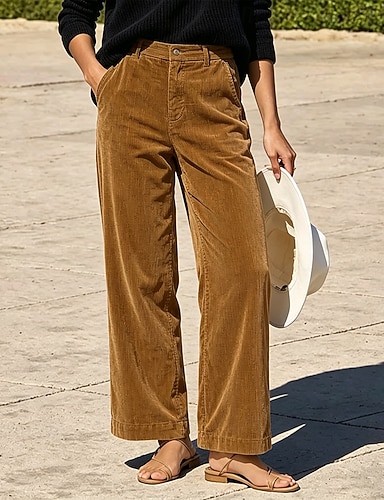 Mulheres Calças Calças de Veludo Calça casual Calça verão Férias Moda Casual Diário Comprimento total Cintura Média Côr Sólida Tecido Bolsos Conforto Macio Respirável Micro-Elástica Diário Ao ar