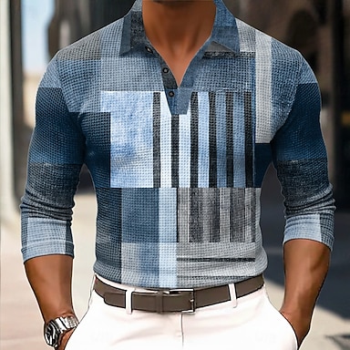 Homens Geométrica Camisas Polo Camisa de golfe Manga Longa Camisas polo Camisas de colarinho Business casual Roupa de Trabalho Traje formal Roupas para festivais Impressão 3D Botões Outono & inverno