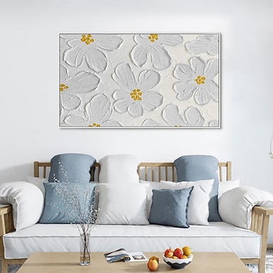 Pintura a óleo artesanal decoração da arte da parede da tela flores brancas texturizadas grossas para decoração de casa rolada sem moldura pintura não esticada