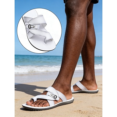 Sandálias de praia masculinas brancas com duas tiras – leves, ajustáveis, com sola acolchoada, ideais para férias na praia e uso na piscina.