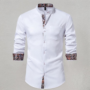 Homens Camisa Social Camisa de colarinho chinês Camisa gola mandarim camisa de verão Camisa casual camisa de praia Preto Branco Vinho Manga Longa Estampado Cashemere Bloco de cor colarinho do vov