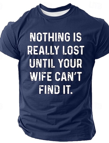 Camiseta Gráfica Masculina Engraçada "Nada Está Realmente Perdido Até Que Sua Esposa Não Consiga Encontrar" Humor de Relacionamento Familiar de Manga Curta