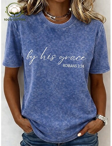 Mulheres Camiseta Imprimir Lavagem ácida Lavagem vintage Gráfico Plantas Letra à moda Básico Clássico Manga Curta Gola Redonda Tops regulares Casual Diário Azul Preto Rosa Roxo Verde Verão Primavera