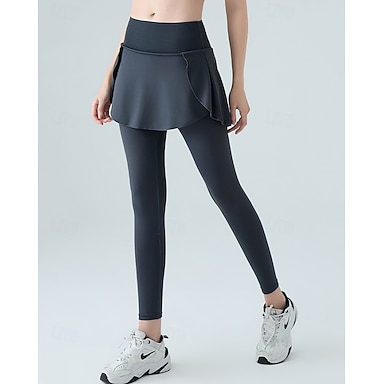 Mulheres Cor Sólida Saia casual Saia com Leggings 2 em 1 Secagem Rápida Esticar Tênis Pickleball Corrida Calças Inverno Preto Café Cinzento Roupas de tênis