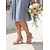 Sandálias femininas douradas de salto baixo com strass - elegantes sapatos slingback com recortes florais e salto bloco confortável, estilo perfeito para a mãe da noiva em um ambiente rústico de