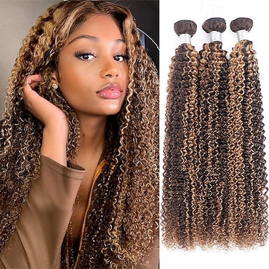 p4/27# Mechas de cabelo humano ondulado cacheado (4 pacotes de 18, 18, 20 e 20 polegadas) cabelo humano brasileiro para mulheres negras