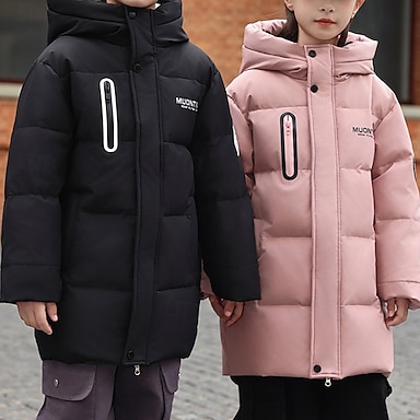 Infantil Para Meninos Plumagem Casaco com capuz agasalhos Letra Manga Longa Zíper Bolsos Casaco Ao ar livre Diário Preto Vermelho Azul Marinha Inverno 4 anos +
