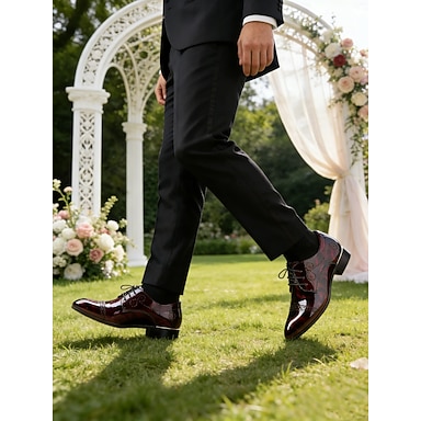 sapatos sociais masculinos de couro envernizado oxford - vermelho e preto, ideais para eventos formais e festas