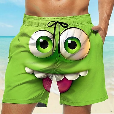Homens Desenhos 3D Rosto sorridente Olhos grandes Calção Justo de Natação Shorts de Natação Bermuda de Surf Cintura Média Engraçado Ao ar livre Férias Dia a Dia Bolsos laterais Forro de malha Cintura