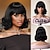 Perucas sintéticas Encaracolado Ondulado Parte do meio Franja Lisa Peruca 12 polegadas Preto Cabelo Sintético 12 polegada Mulheres Macio Natureza negra
