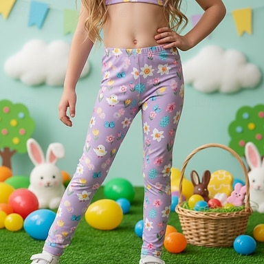 Páscoa Para Meninas 3D Floral Gráfico Calças Leggings Impressão 3D Primavera Outono Estilo bonito Roupa de rua Básico Infantil 4-12 anos Casual Diário Ao ar livre Normal