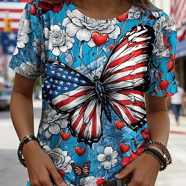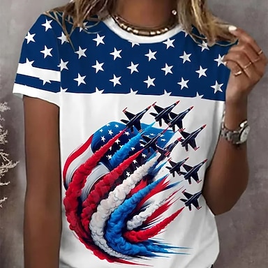 Dia da Independência Aniversário Americano Camiseta Feminina Estampada Gráfica Bandeira Estilosa Clássica Casual Manga Curta Gola Careca Gola Redonda Tops Regulares Diário Azul Preto Vermelho Verde