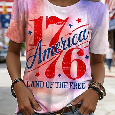 Dia da Independência Camiseta Feminina Americana Aniversário Patriótica Impressão Gráfica Bandeira Letra Estilosa Clássica Casual Manga Curta Decote Redondo Tops Regulares