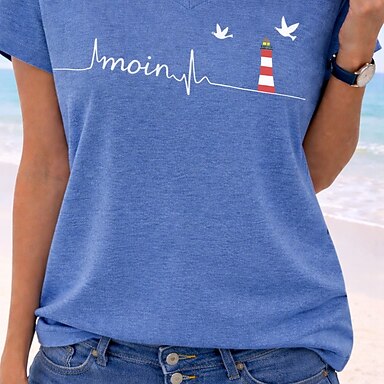 Mulheres Camiseta Imprimir Gráfico Letra Time de futebol à moda Clássico Casual Manga Curta Decote V Tops regulares Casual Diário Azul Roxo Laranja Verde Cinza-acastanhado Verão Primavera