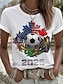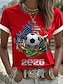 Mulheres Camiseta Imprimir Gráfico Time de futebol à moda Clássico Casual Manga Curta Decote V Tops regulares Diário Azul Preto Branco Vermelho Verde Verão Primavera