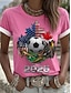 Mulheres Camiseta Imprimir Gráfico Time de futebol à moda Clássico Casual Manga Curta Gola Redonda Tops regulares Diário Amarelo Vermelho Verde Verão Primavera