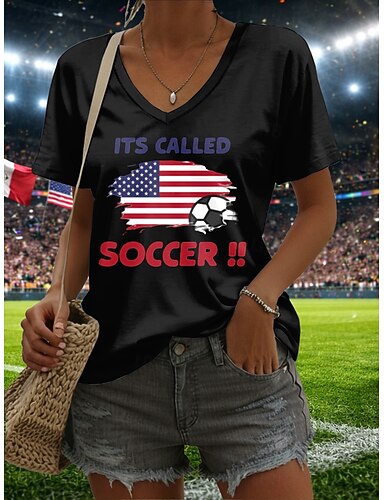 Mulheres Camiseta Imprimir Gráfico Time de futebol à moda Clássico Casual Manga Curta Decote V Tops regulares Diário Azul Preto Branco Verde Verão Primavera