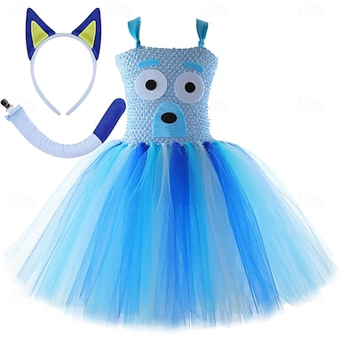 Cachorro azul Bingo Vestidos Roupa Tutu Filme de aventura Para Meninas Crianças Dia Das Bruxas Carnaval Espetáculo Vestir-se Educacionalmente Vestir-se para eventos escolares