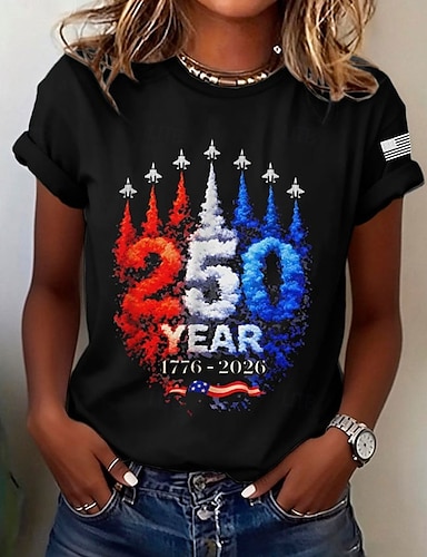 Dia da Independência Americana Mulheres Camiseta Imprimir Gráfico Letra Vintage à moda Clássico Manga Curta Gola Redonda Tops regulares Diário Azul Preto Branco Verão Primavera