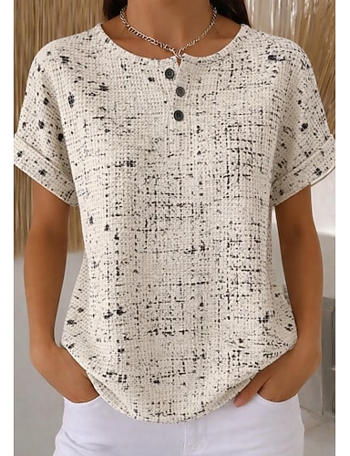 Tops Waffle Femininos Malha Texturizada Camiseta Cor Block Gráfica Geométrica Abstrata Estilosa Clássica Manga Curta Gola Redonda Tamanhos Regulares Diários Esportivos Fim de Semana Marrom Claro