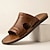 Sandálias masculinas de couro sintético marrom, modelo slide, com bico aberto, confortáveis para o verão, casuais, para praia e uso diário.