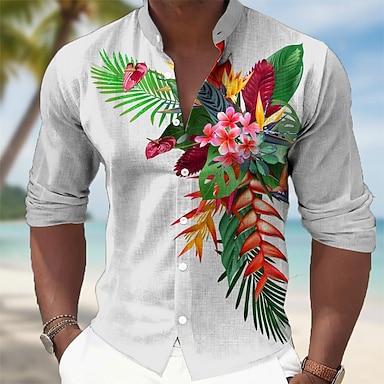 Homens Flores tropicais Folha de palmeira tucanos Camisa Social Camisas havaianas Camisa de gola alta Manga Longa Havaiana Casual Férias Primavera Outono Colarinho Mandarim Faixa Impressão 3D Camisas